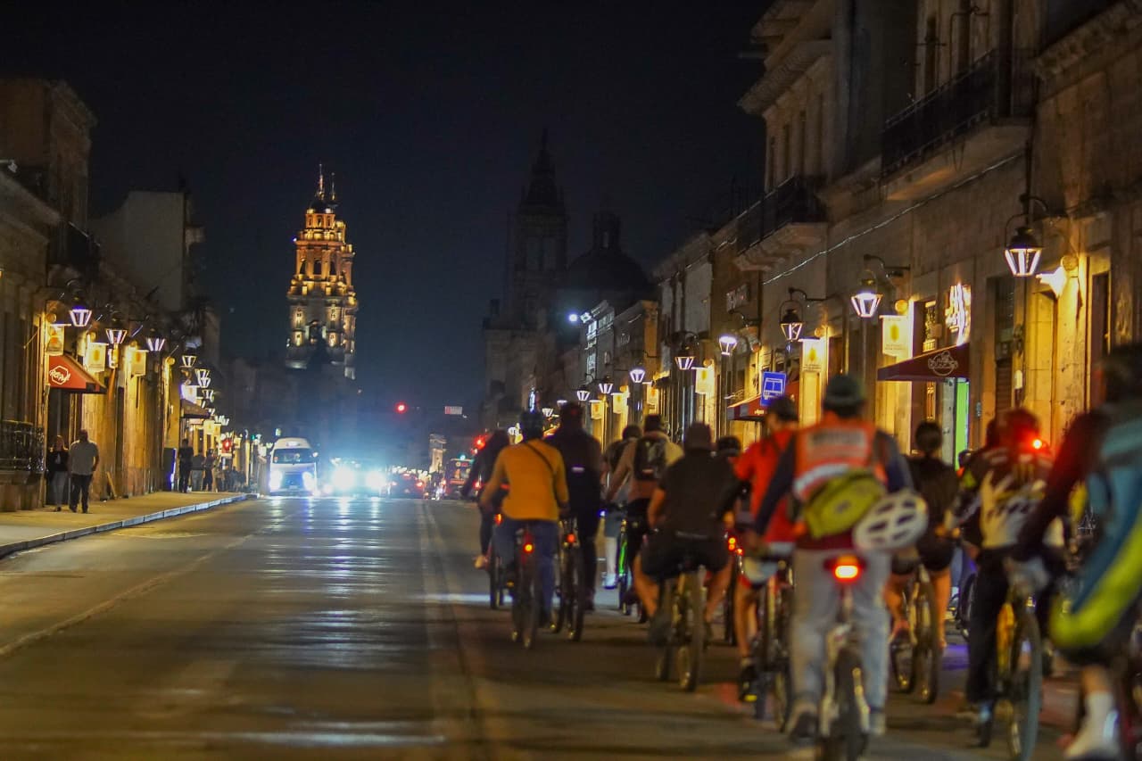 Morelia, Mich. | Agencia ACG.- La noche cae sobre Morelia y, poco a poco, la explanada de la Plaza Morelos comienza a transformarse. No hay escenario ni reflectores, pero sí un movimiento constante: bicicletas que llegan, luces que parpadean, voces que se saludan. Es miércoles, y como ocurre cada semana, el nocturno vuelve a tomar forma.