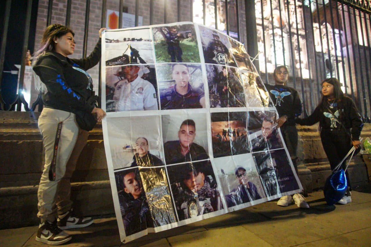Morelia, Michoacán | Redacción ACG. – La noche del 14 de octubre, familiares, amigos y compañeros de los policías que perdieron la vida en la emboscada de Aguililla en 2019 se reunieron frente a Palacio de Gobierno para conmemorar juntos ese suceso que marcó a Michoacán para siempre. La concentración, breve y respetuosa, fue un recordatorio silencioso del dolor que aún permanece en las familias de los 14 elementos caídos aquel día.
