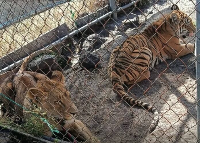 Jiquilpan, Mich.- 7 de febrero de 2025.- La escena era desoladora. Entre muros descascarados, basura acumulada y el silencio de un inmueble abandonado de la ciudad de Jiquilpan, autoridades federales localizaron a dos felinos exóticos que sobrevivían en condiciones críticas; una leona africana y un tigre de bengala, confinados en una jaula sin techo, expuestos a la intemperie y sin los cuidados mínimos para su subsistencia.