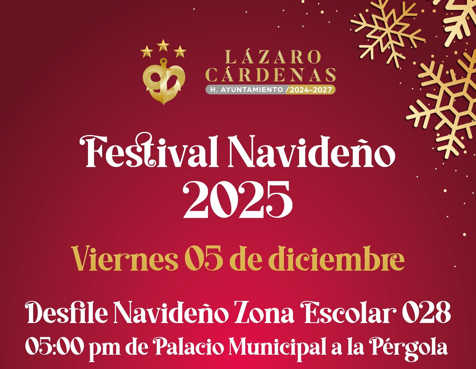 Cd. Lázaro Cárdenas, Mich., a 04 de Diciembre de 2025.- El Gobierno Municipal de Lázaro Cárdenas invita a todas las familias a disfrutar del Festival Navideño 2025, un evento lleno de magia, color y tradiciones que marcará el inicio de las celebraciones decembrinas en el municipio.