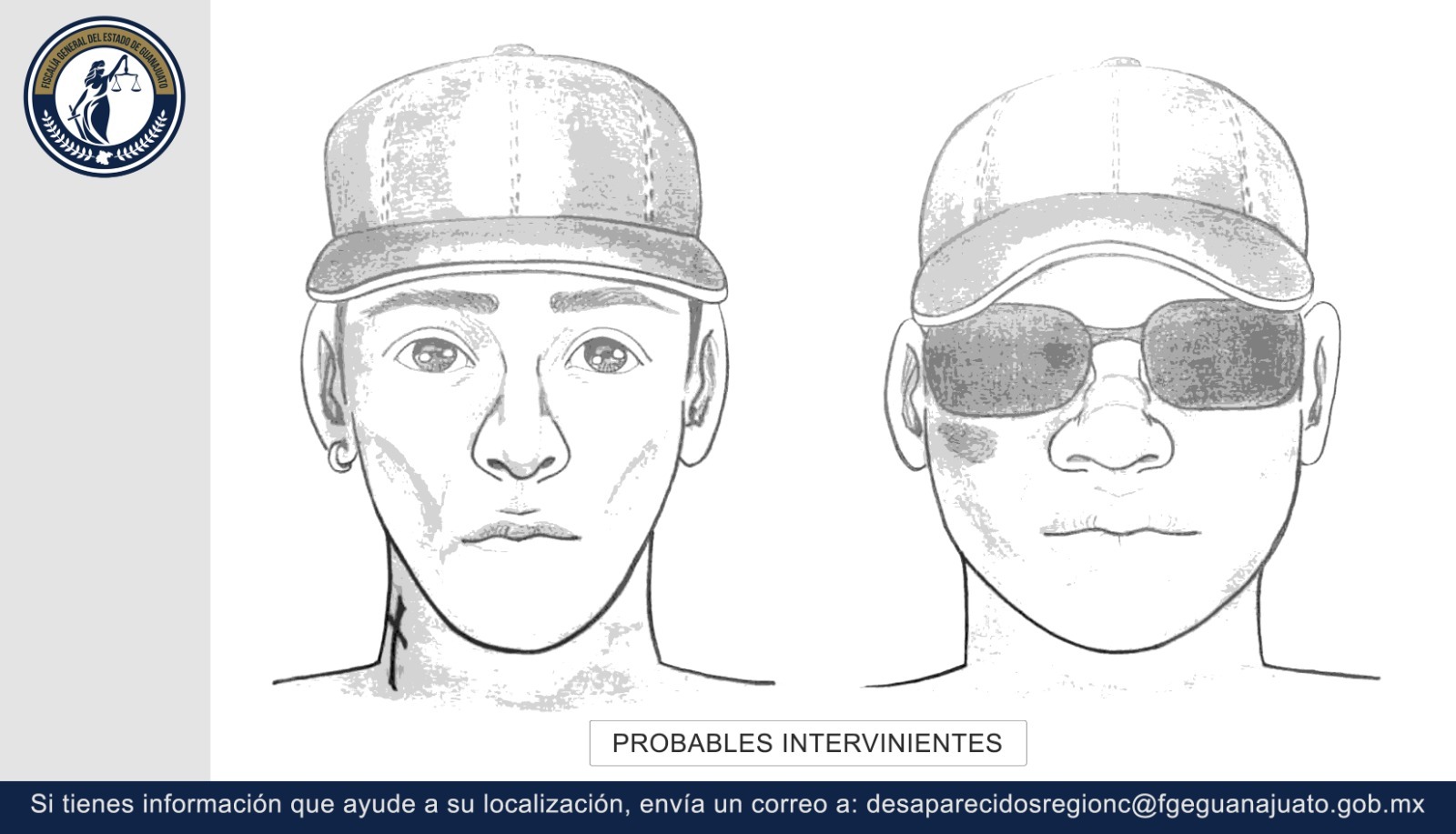 Cualquier información que contribuya a su identificación o localización puede ser proporcionada en el Palacio de Justicia, tercer piso, calle Heliotropo S/N, colonia Las Flores, Celaya, Guanajuato, C.P. 38090, o comunicándose al teléfono (461) 598 5200, extensiones 76055 y 76155, así como al correo electrónico desaparecidosreglonc@fgeguanajuato.gob.mx.