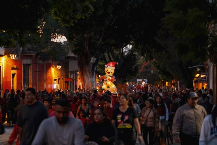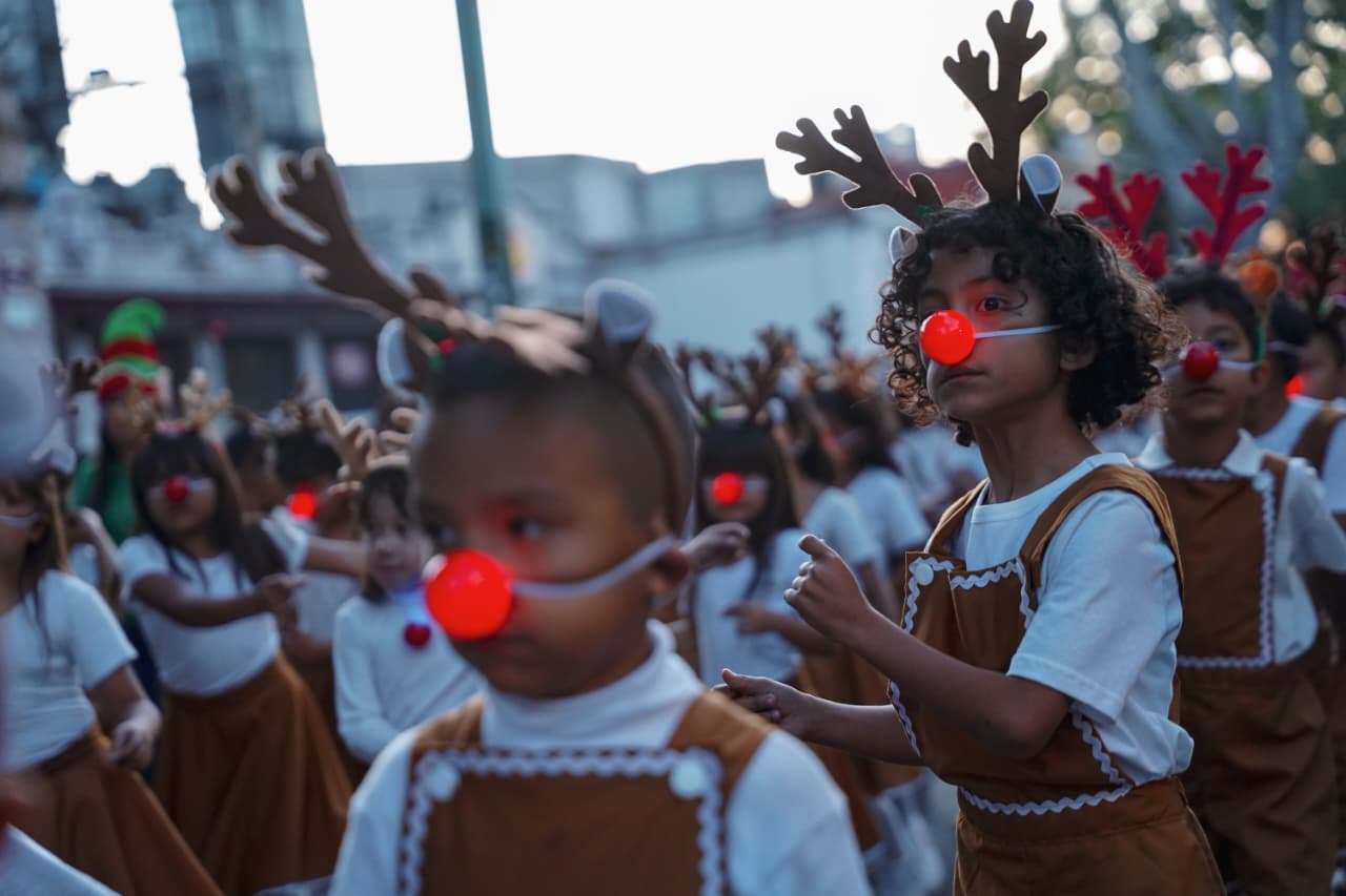 Morelia, Mich. | Agencia ACG.- Así se vio el paso de la caravana navideña del movimiento antorchista por la avenida Madero, rumbo al Palacio de Gobierno, en donde continuarán sus actividades decembrinas. Durante el recorrido, juguetearon figuras navideñas emblemáticas desde duendes hasta renos; mientras familias enteras se lanzaban espuma y confeti, en medio de luces y música alusiva a la época. Un enviable espíritu festivo en el corazón de la capital michoacana.