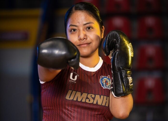 Morelia, Michoacán, a 21 de julio de 2025.- Geraldinne López Martínez es una joven de 20 años que estudia la carrera de Químico Farmacobiología en la Universidad Michoacana de San Nicolás de Hidalgo (UMSNH), pero también se abre paso en el box, una disciplina que todavía en estos días sigue siendo considerada para hombres.
