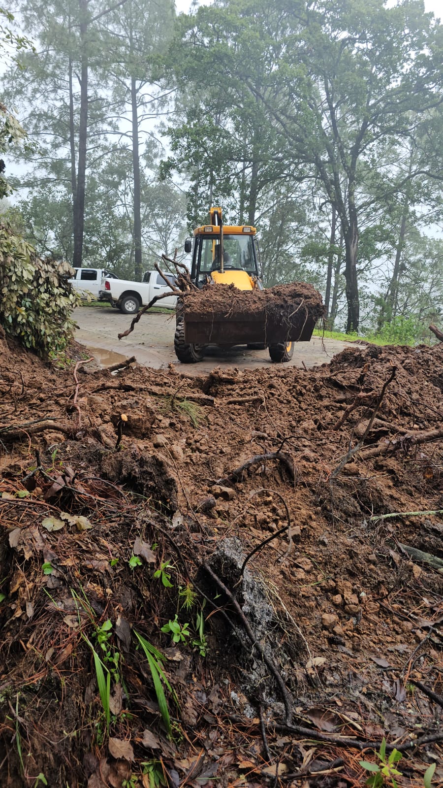 En el lugar, y con el auxilio de maquinaria pesada y el apoyo de pobladores y ejidatarios, se retiraron árboles caídos, ramas, piedras y lodo que ponían en riesgo a las y los habitantes.