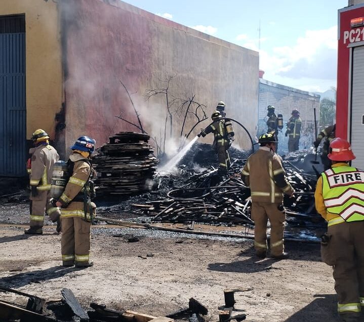 Morelia, Michoacán, a 27 de diciembre de 2025.- La Coordinación de Protección Civil y Bomberos de Morelia atendió de forma inmediata un incendio registrado este día en las proximidades de la colonia La Quemada, ubicada al norponiente de la ciudad, al interior de un negocio dedicado al resguardo de tarimas.