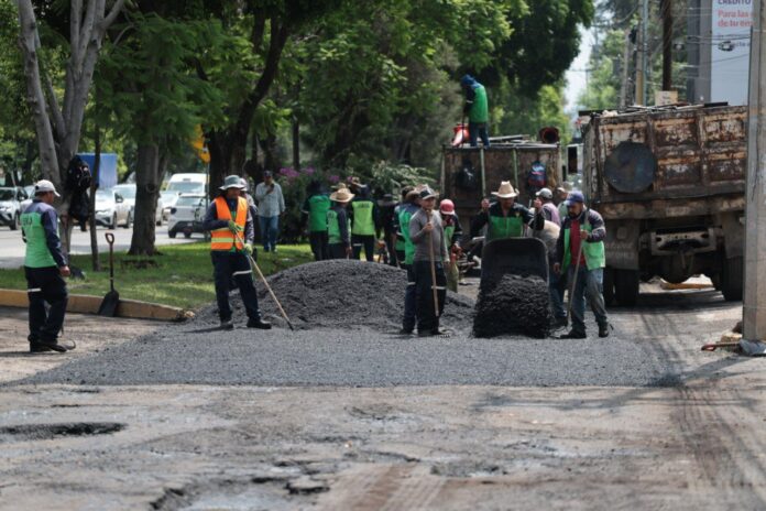 Las tareas consisten en bacheo con material asfáltico en avenida Camelinas, desde su cruce con calle Beethoven hasta la avenida Sansón Flores, en donde trabajan 2 brigadas de bacheo de la Secretaría de Obras Públicas en conjunto con la jetpatcher para reparar la vialidad y que el tránsito sea de forma segura para todos y todas las automovilistas.