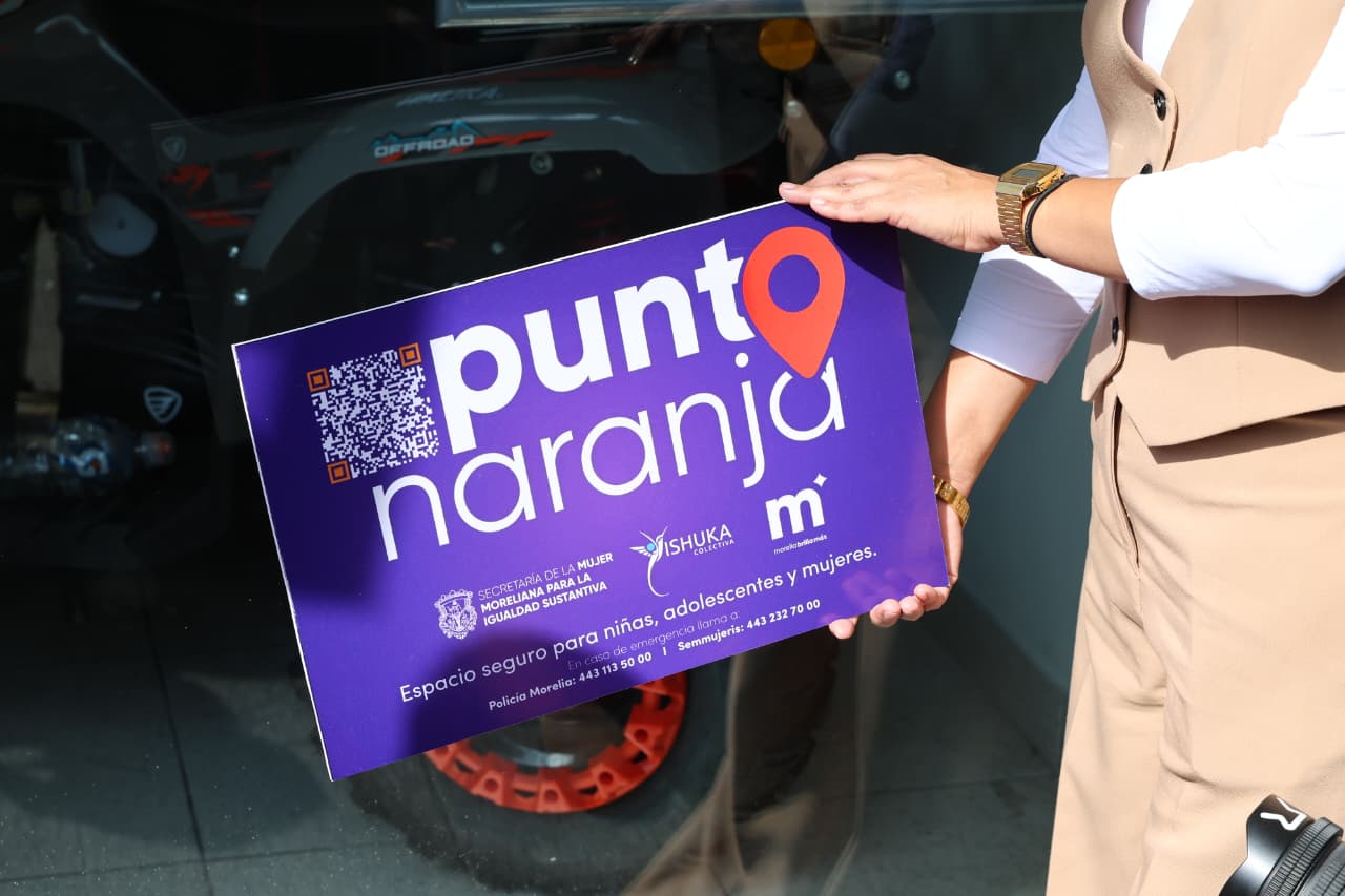 Adriana Aguilera, gerente de atención de la Unidad de Género de Grupo Salinas, refrendó a este corporativo como un aliado de la estrategia Punto Naranja, dado que contribuye a una Morelia más segura, más solidaria y más empática.