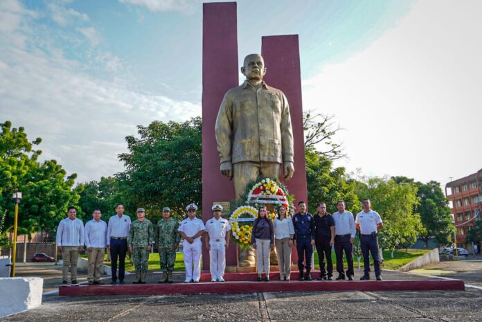 Cd. Lázaro Cárdenas, Mich., a 19 de Octubre del 2025.- Un día como hoy, pero de 1970, fallecía Lázaro Cárdenas del Rio, uno de los personajes más importantes del siglo XX en México; el reformador incansable y símbolo de justicia para los mexicanos; por lo que en la conmemoración de su 55 aniversario, autoridades navales, militares y municipales recordaron su legado en una ceremonia en el monumento al “General”.