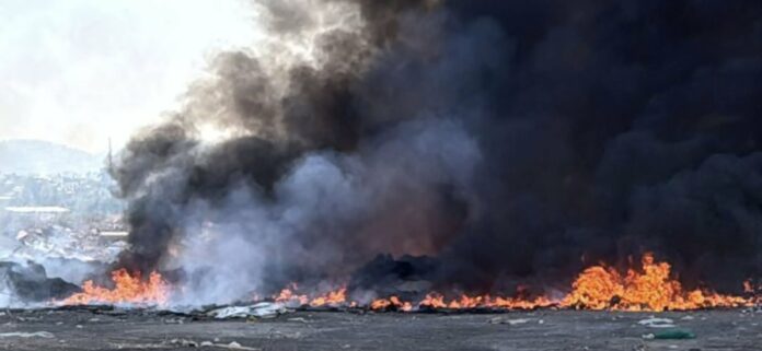 Tarímbaro/Morelia, Mich.- Domingo 15 de marzo.- Una gran columna de humo negro se apreció desde varios puntos de la zona norte de la ciudad de Morelia; se trató de la quema de basura y llantas en un predio baldío aledaño al fraccionamiento Erandeni III, ubicado en el municipio de Tarímbaro, informaron fuentes allegadas al tema.