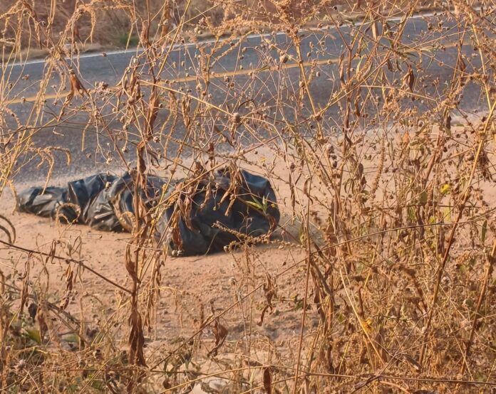Buenavista Tomatlán, Mich.- 4 de enero de 2026.- El cuerpo sin vida, embolsado y con huellas de violencia de un hombre desconocido, fue localizado tirado a un lado de la carretera Tepalcatepec – Buenavista.