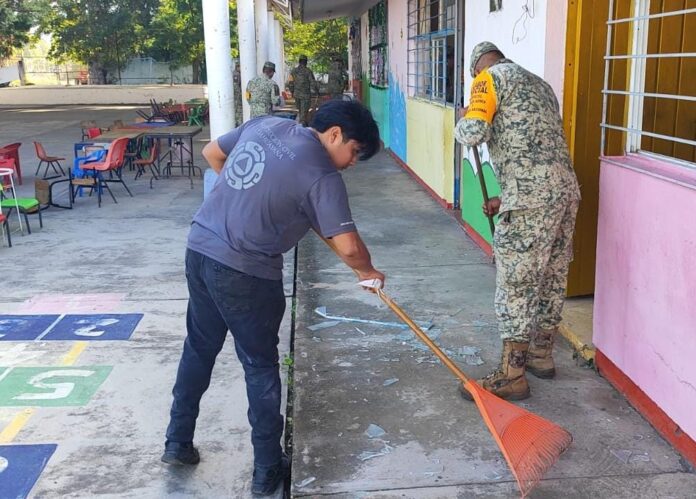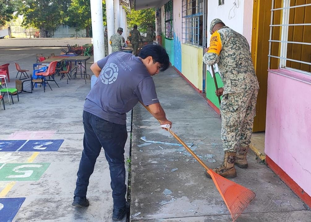 Las actividades se desarrollaron en varios planteles educativos y en las instalaciones del DIF Municipal, donde se realizaron trabajos de limpieza, rehabilitación de áreas comunes, apoyo directo a familias en situación vulnerable y acciones orientadas a dignificar zonas de uso comunitario.