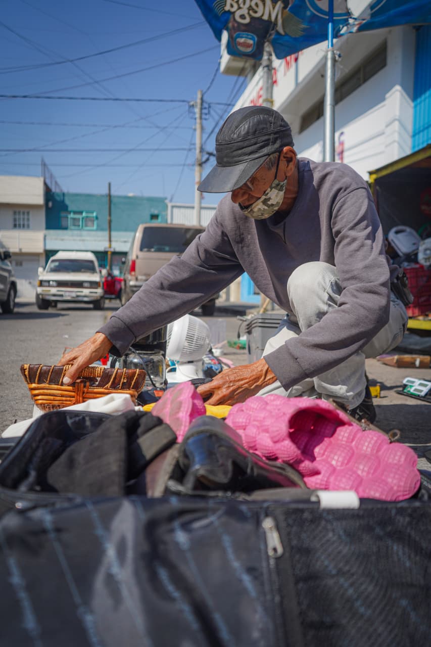 José Juan trabaja todos los días, excepto los domingos, cuando se instala otra unión de comerciantes alrededor del Auditorio. Asegura que, aunque ese día hay mayor afluencia de personas, el tipo de mercancía que él ofrece tiene más demanda entre semana, cuando los clientes acuden específicamente a buscar piezas para reparar otros objetos.