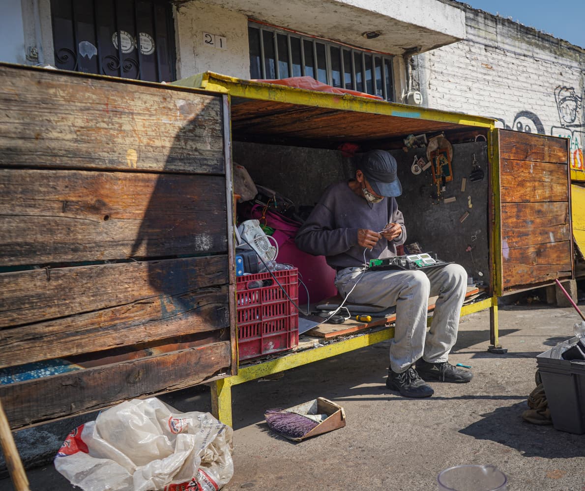 De acuerdo con su testimonio, el tianguis inició desde sus primeros años con los cubículos metálicos que aún hoy permanecen en la zona. Estos espacios, que en un inicio servían para resguardar las pertenencias y mercancías de los vendedores, se convirtieron con el tiempo en una extensión del trabajo cotidiano y de la vida misma de quienes ahí comerciaban todo tipo de objetos: desde electrónica, herramientas y piezas sueltas, hasta las tradicionales “chácharas” que caracterizan al lugar.