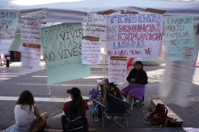 Los colectivos también instalaron un tendedero de denuncias donde señalaron a empresas presuntamente responsables de prácticas abusivas.