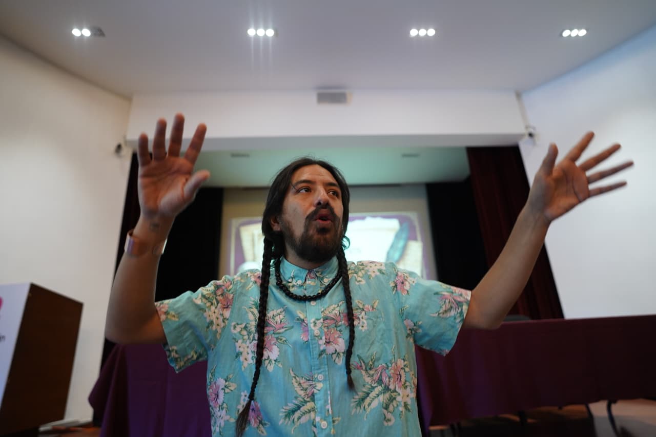 «El cuerpo es súper importante para narrar», dice el artista. En un encuentro dedicado a contar leyendas, la voz y la expresión física son herramientas centrales. No basta con relatar que algo da miedo; hay que hacerlo sentir. El canto circular, afirma, ayuda a matizar la voz, a experimentar tonos, ritmos y emociones.