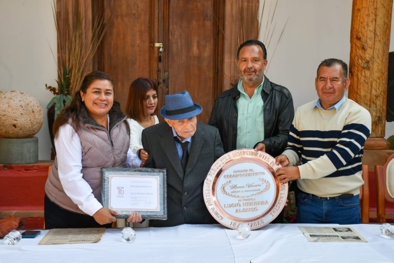 Pátzcuaro, Michoacán, a 18 de noviembre del 2025.- El presidente municipal de Pátzcuaro, Julio Arreola, encabezó la entrega de un reconocimiento al periodista patzcuarense Don Lucio Herrera Alonso, “el profe Lucio”, por su destacada labor al frente de La Crítica Regional y su aporte histórico al periodismo michoacano.