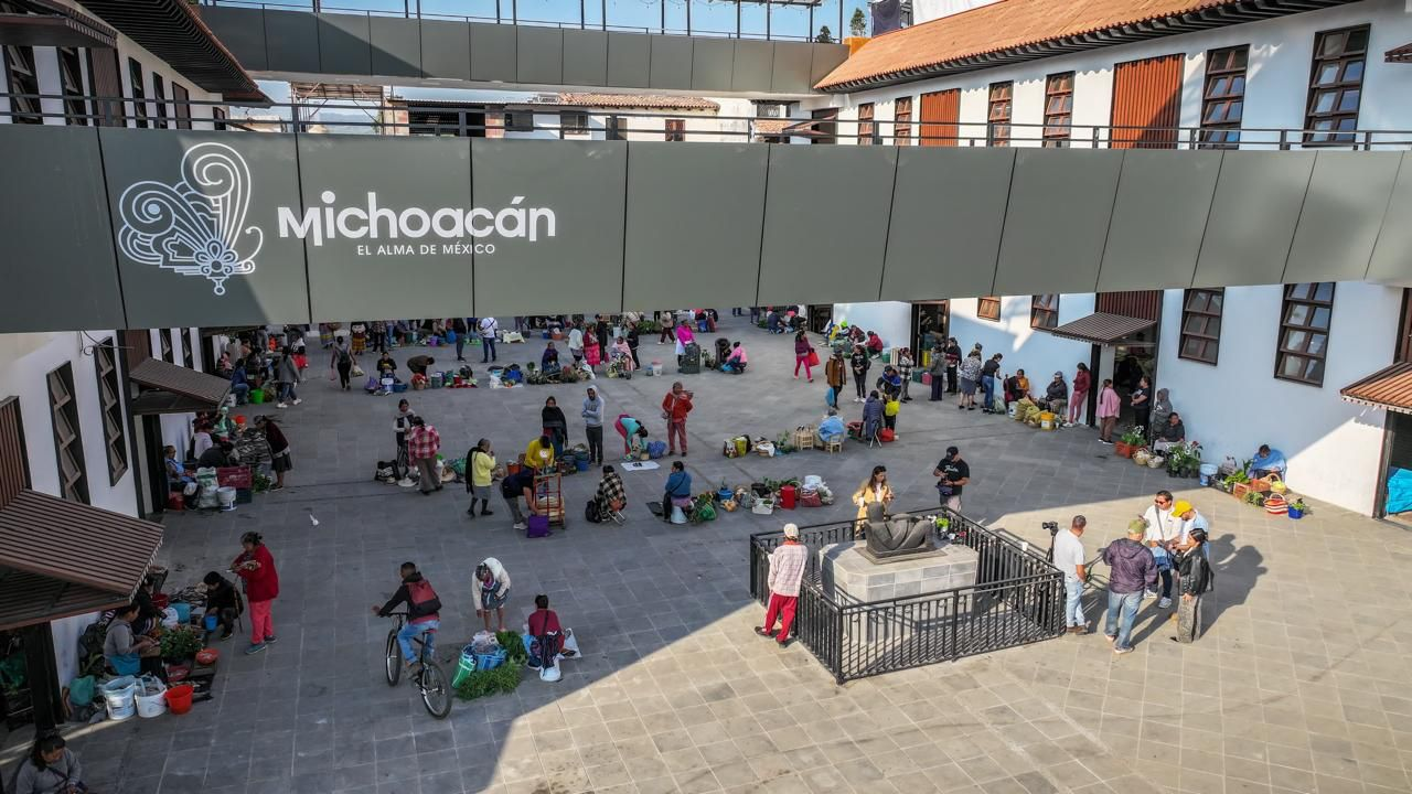 El gobernador Alfredo Ramírez Bedolla destacó que este inmueble, inaugurado el pasado 9 de abril, cuenta con la Plaza Volador, sitio en el que se ubica una réplica de un chac mool encontrado durante la construcción del mercado y donde martes y viernes se desarrolla esta actividad ancestral, dando continuidad a las tradiciones de la entidad.