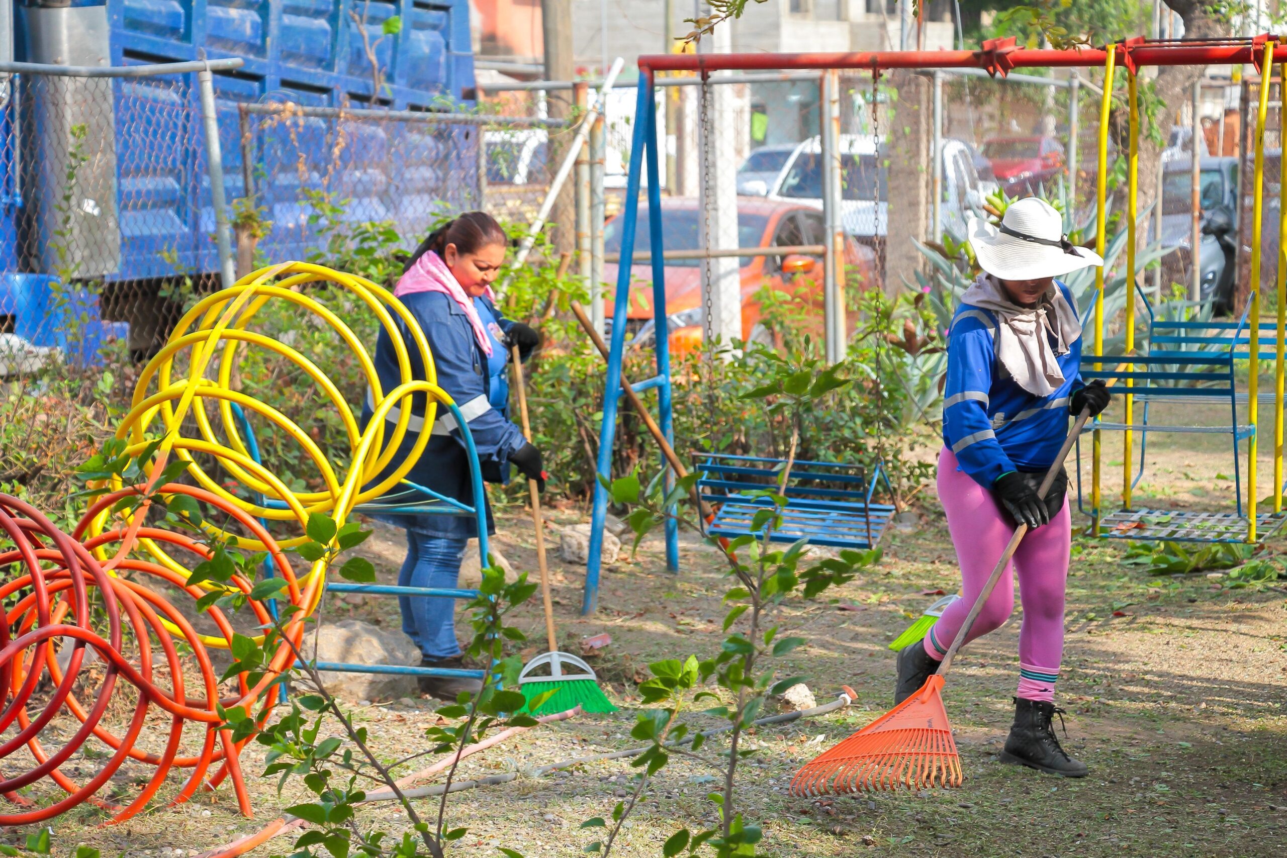 Las acciones fueron apoyadas con maquinaria pesada y camiones de volteo, lo que permitió avanzar de forma eficaz en el acondicionamiento del entorno.