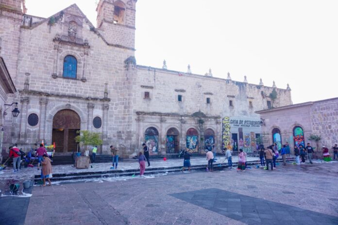 Morelia, Michoacán | Agencia ACG.- Este martes por la mañana, artesanos de distintas comunidades indígenas que se instalan de manera habitual en la cerrada San Agustín participaron en una jornada de limpieza en coordinación con personal encargado de limpieza de la ciudad, con el objetivo de preparar el espacio para el próximo Festival de la Enchilada y la Corunda, que se realizará los días 10, 11 y 12 de octubre.