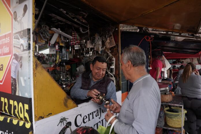 Morelia, Mich. | Redacción ACG.- Entre el ruido constante del mercado Independencia, y el ir y venir de quienes buscan una copia urgente en la Calle Vicente Santa María, hay un sonido que se repite como un latido metálico: el roce de una llave contra la guía, el filo que dibuja dientes sobre el metal. Es el sonido del oficio de Eugenio Martínez, cerrajero desde los 12 años.