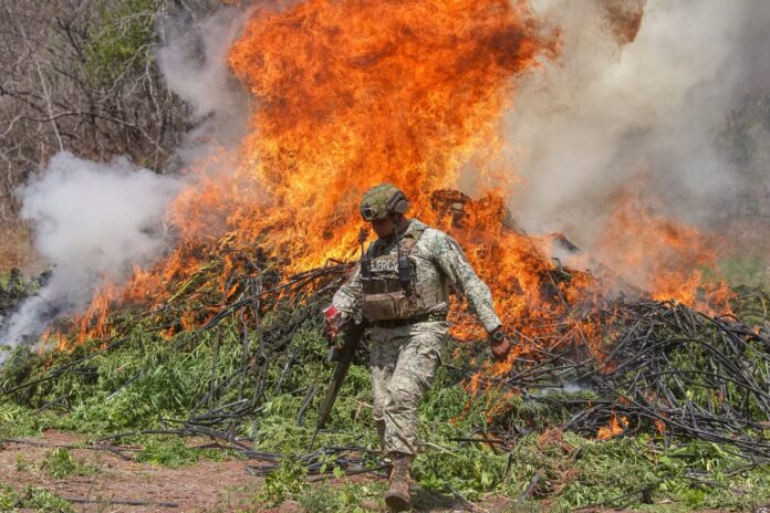 Morelia, Mich. | Redacción ACG.- En un operativo conjunto, elementos del Ejército Mexicano, la Fuerza Aérea Mexicana y la Guardia Nacional localizaron cinco plantíos de marihuana en una vaguada del municipio de Turicato, en la región de Tierra Caliente.