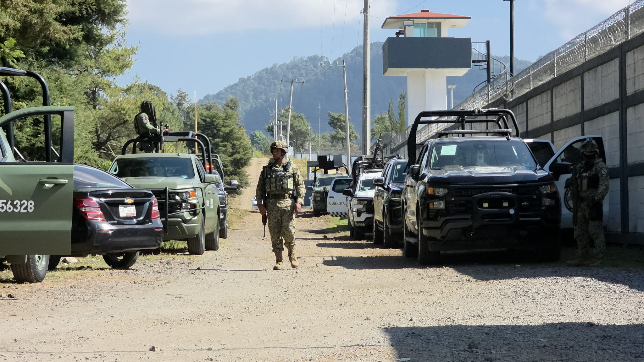Uruapan, Mich.- 3 de diciembre de 2025.- La reunión de seguridad realizada esta tarde en el cuarto de mando de la Guardia Nacional en la región Uruapan concluyó bajo un fuerte despliegue de vehículos oficiales y escoltas que marcaron el pulso del operativo en la zona.