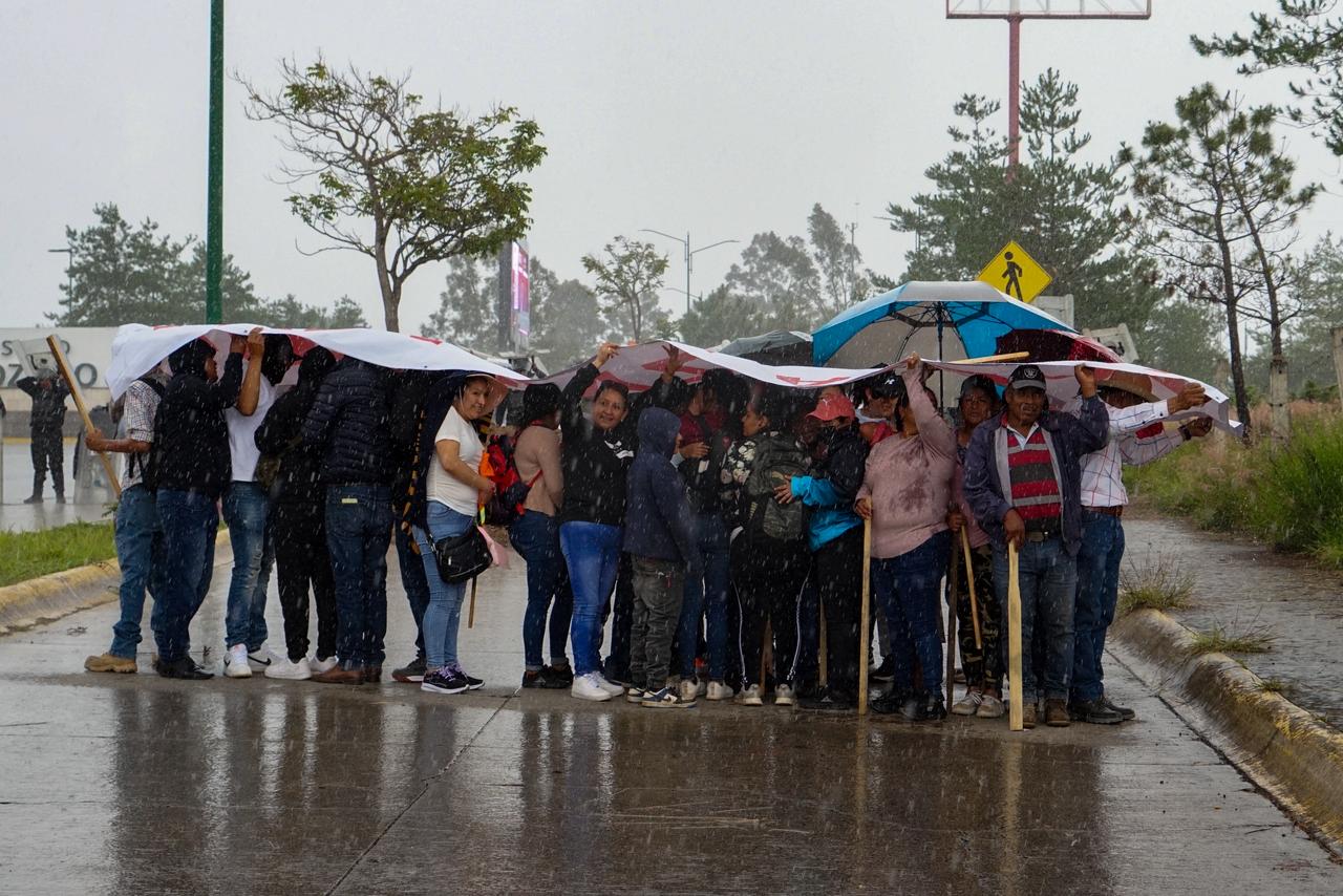 A pesar de la adversa lluvia, los manifestantes se apoyan y se mantienen firmes a sus ideales.