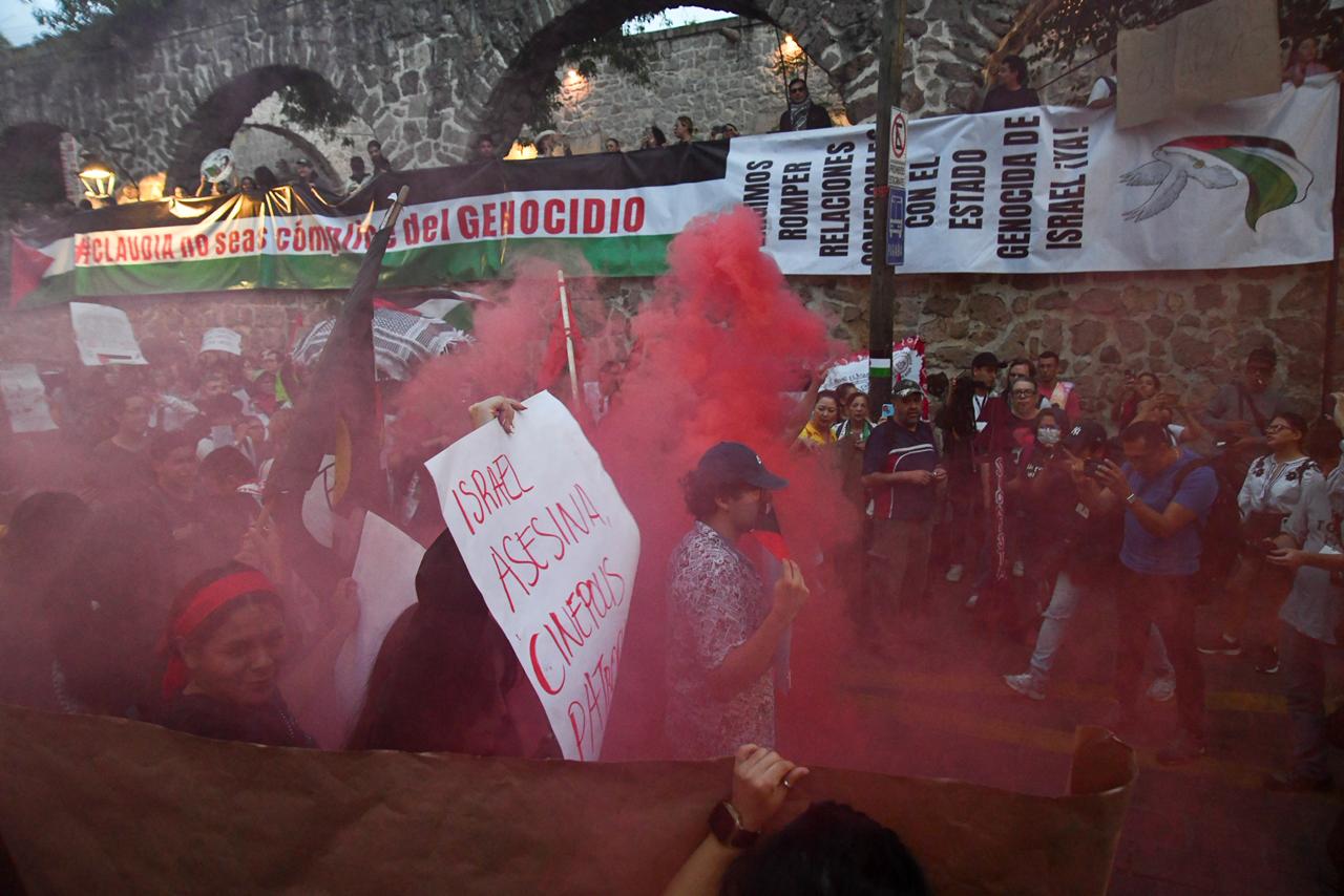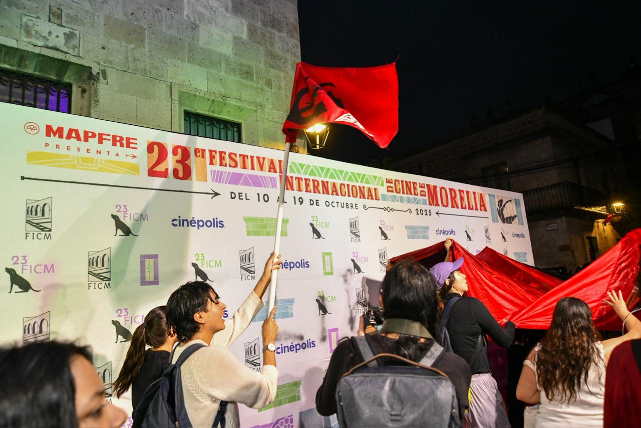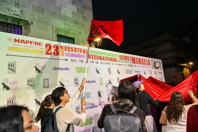 Morelia, Michoacán | ACG.– Lo que comenzó como una marcha pacífica en apoyo al pueblo palestino, derivó la noche de este sábado en una protesta que interrumpió momentáneamente las actividades del 23º Festival Internacional de Cine de Morelia (FICM), uno de los eventos culturales más importantes del país.