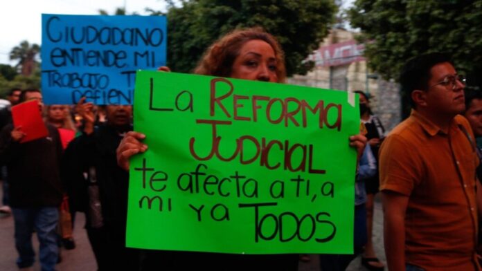 A las ocho de la mañana integrantes del Colegio de Secretarios de Estudio y Cuenta de la Corte, se manifestaron frente al acceso principal del máximo tribunal. Por espacio de una hora estuvieron lanzando consignas, confiando en que la aprobación de la reforma al Poder Judicial aún se pueda detener en el Congreso.