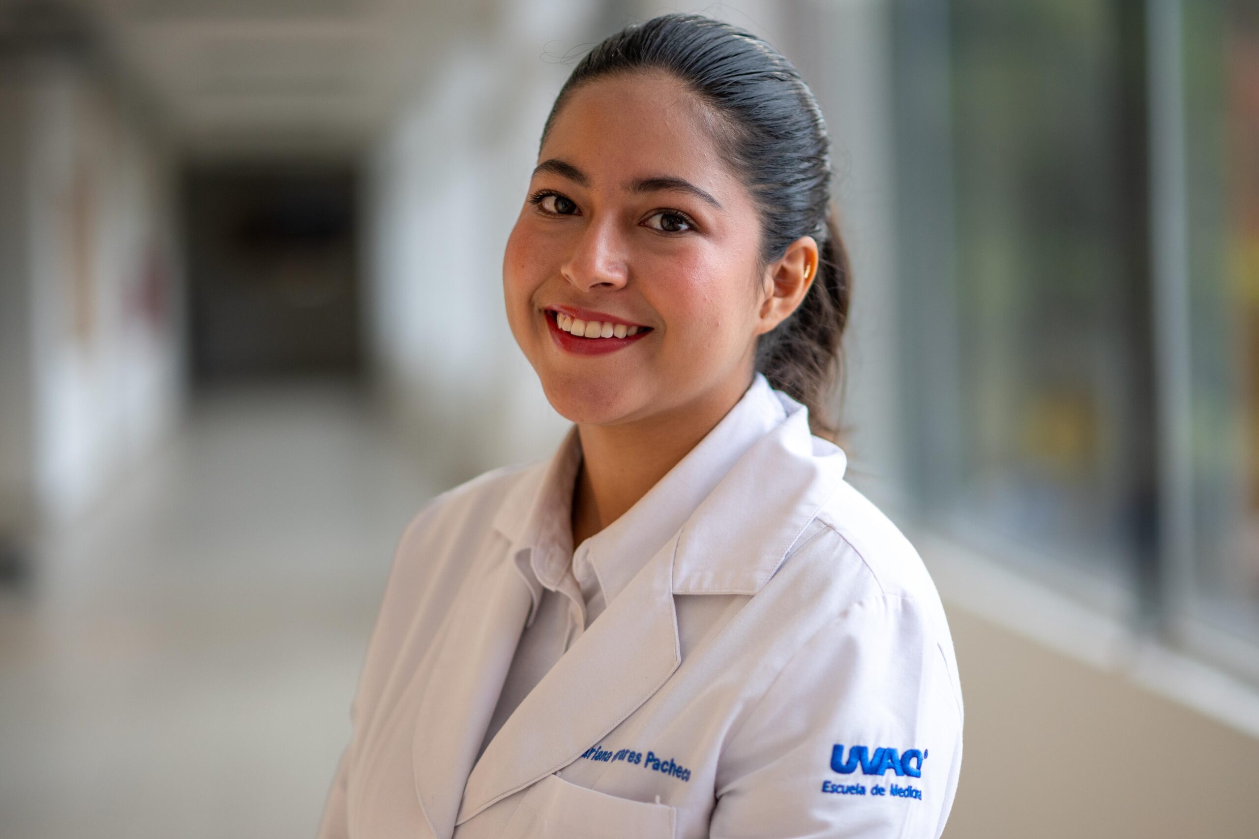 Paralelo a la formación clínica, Mariana ha construido un perfil ligado a la investigación científica. En el verano de 2025 realizó una estancia en Armenia, Colombia, a través del Programa Delfín, en el que participa la UVAQ. Ahí trabajó en un laboratorio con un proyecto sobre cicatrización de heridas crónicas, a partir del análisis de un péptido derivado de un escarabajo. La experiencia, afirma, fue un aprendizaje profundo. “Te das cuenta de que no lo sabes todo y tienes que aprender a ser paciente contigo”, señala, al recordar el trabajo paso a paso en cultivos celulares y pruebas de laboratorio.
