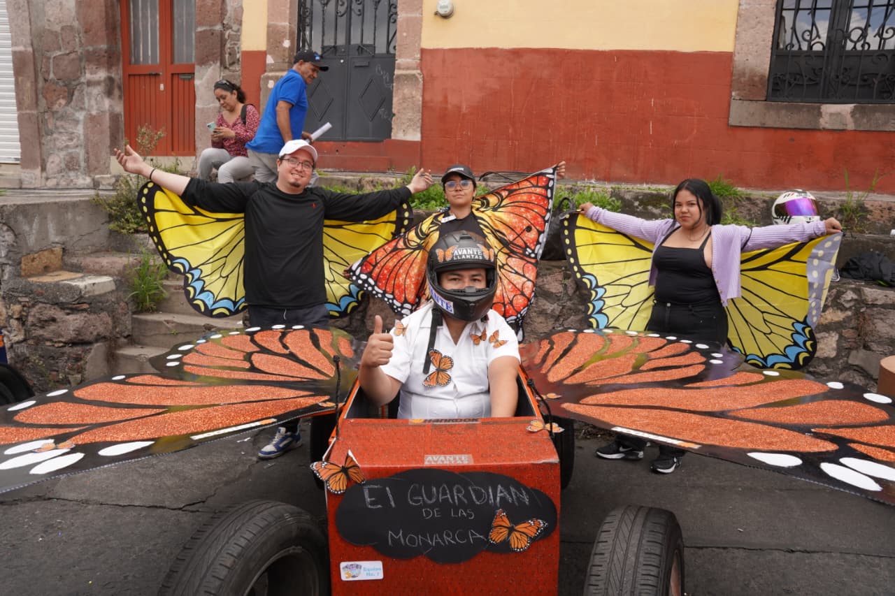 Y, desde Las Tarascas hasta el Coloso del Quinceo, la Mariposa Monarca y el Tren se suben a la tercera edición de Los Carritos Locos de Morelia, una carrera que cruzara a toda velocidad la Avenida Morelos Norte, junto a la Casa de la Cultura.