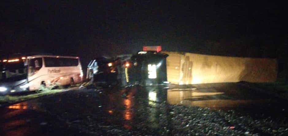 Otros transportistas se detuvieron para ayudar a su colega, momentos después en el sitio se presentaron paramédicos asignados a la autopista, confirmando que no había personas lesionadas.