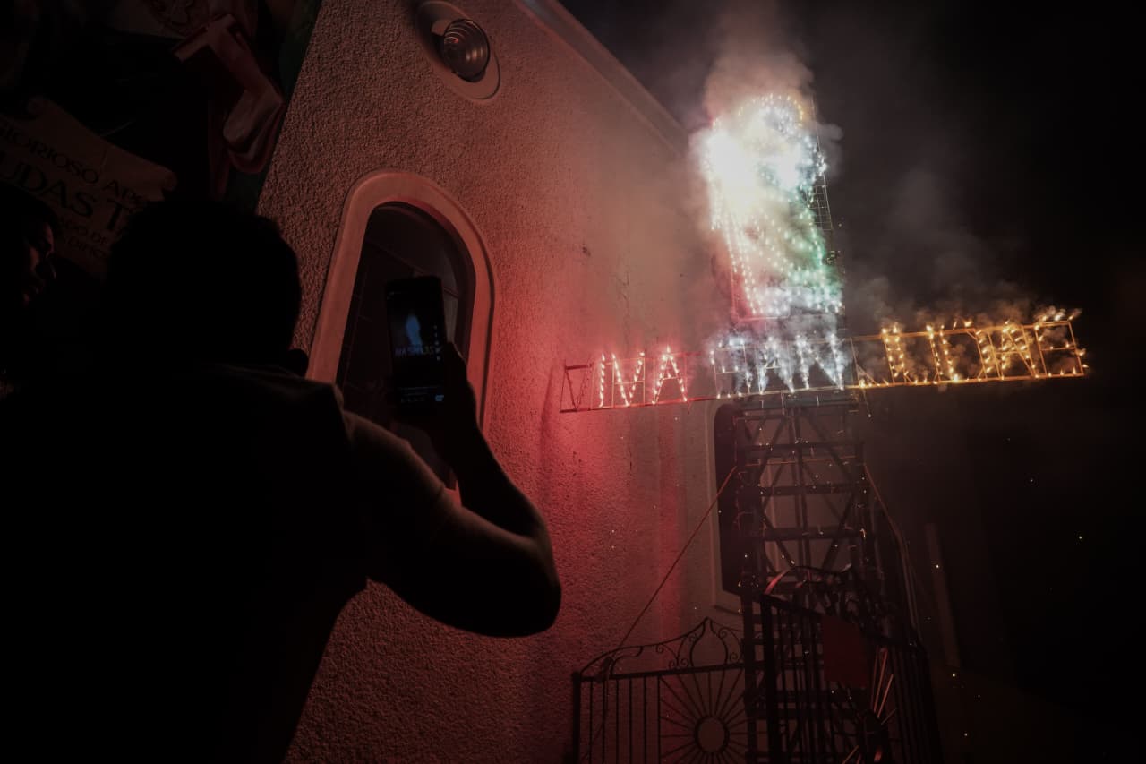 En punto de las nueve de la noche, el cielo se iluminó con el castillo de fuegos artificiales que marcó el cierre de la celebración. El estallido de luces reunió a cientos de devotos que, entre aplausos y plegarias, miraban al cielo buscando una señal del santo de las causas difíciles.