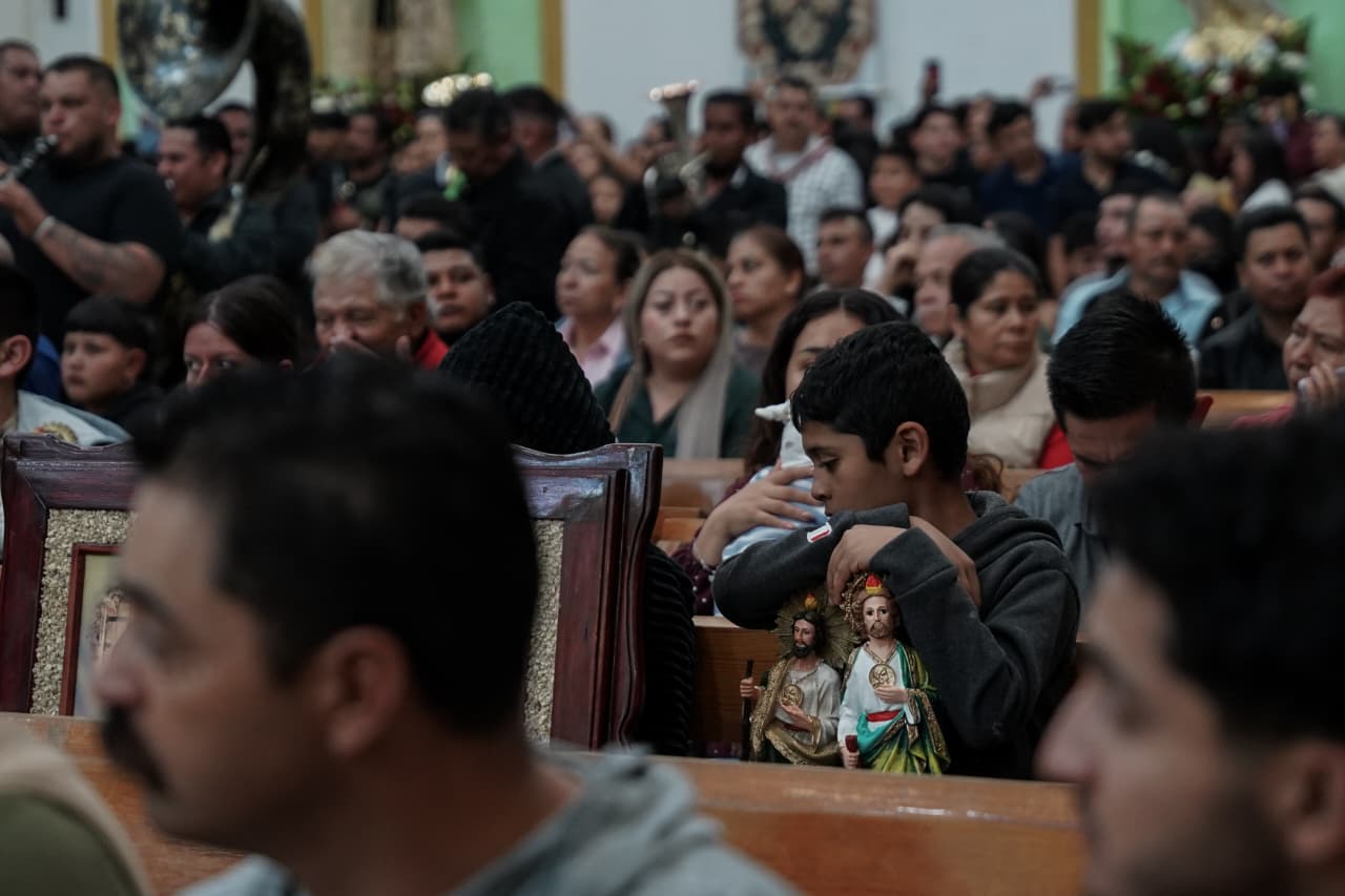 El padre Abel Montoya Chávez bendice a los asistentes uno por uno, «Desde el sábado pasado hemos recibido más de cuarenta mil personas», comenta. «Pero lo más hermoso no es el número, sino la devoción. Ojalá algo de San Juditas se les quede en el corazón».