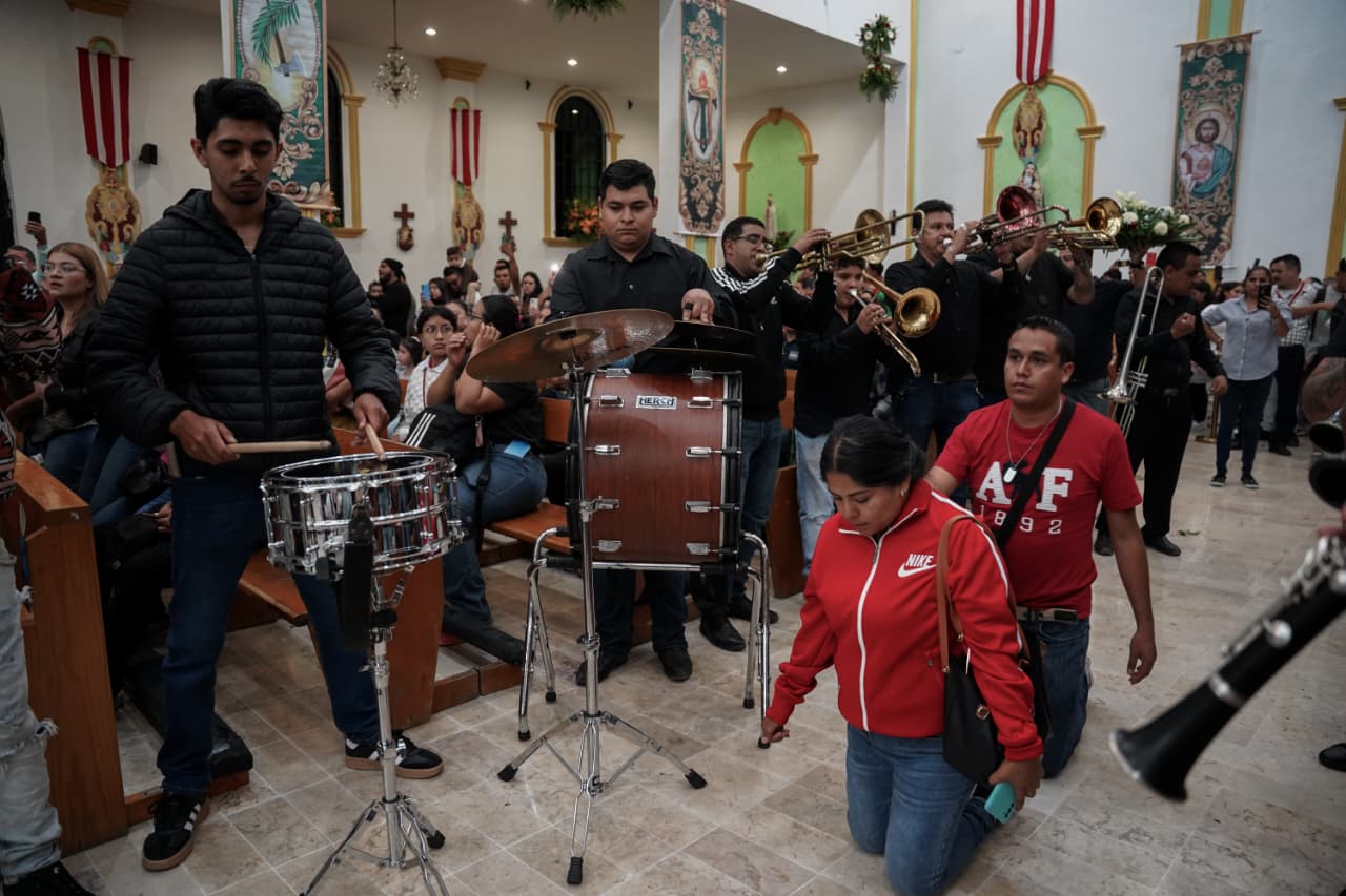 Entre los pasillos, Jonathan y Yoleth reparten pulseras con la imagen del santo. «Al principio queríamos venderlas, para sacar un poco de dinero», confiesa Jonathan, «Pero ya aquí sentimos que no estaba bien. Hacer negocio con la fe no es correcto y mejor las regalamos, es nuestra manera de agradecerle».
