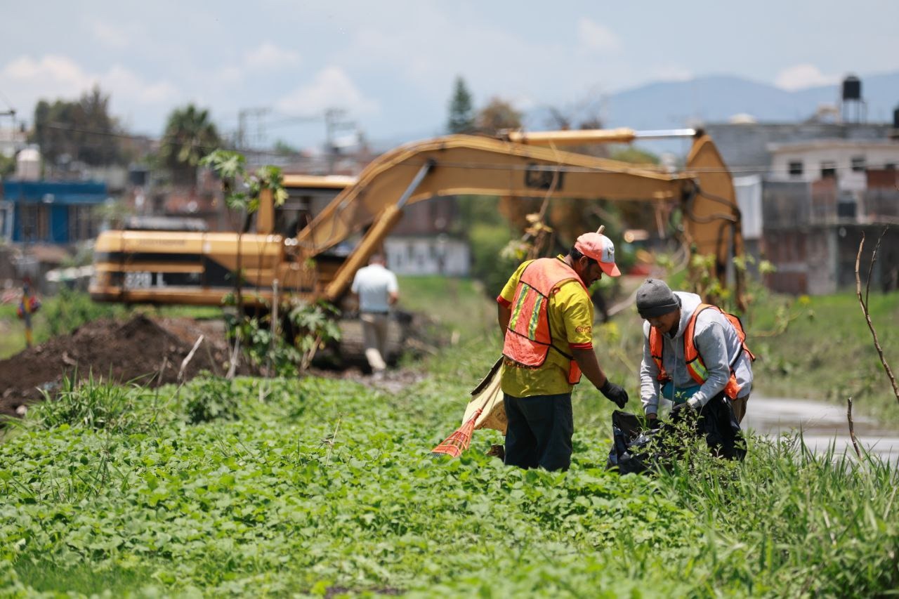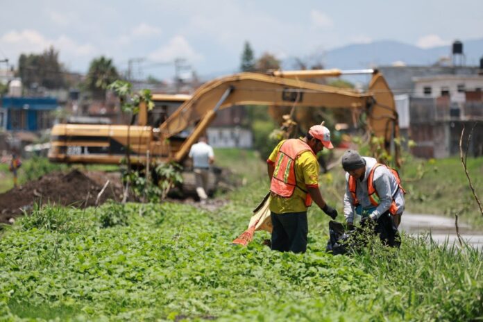 Alfonso Martínez recorrió las zonas donde Servicios Públicos, Obras Públicas Municipales y OOAPAS trabajan en coordinación para desazolvar e incrementar el área hidráulica del canal, con el que se dará mayor fluides al caudal sin taponamientos de lirio o basura.