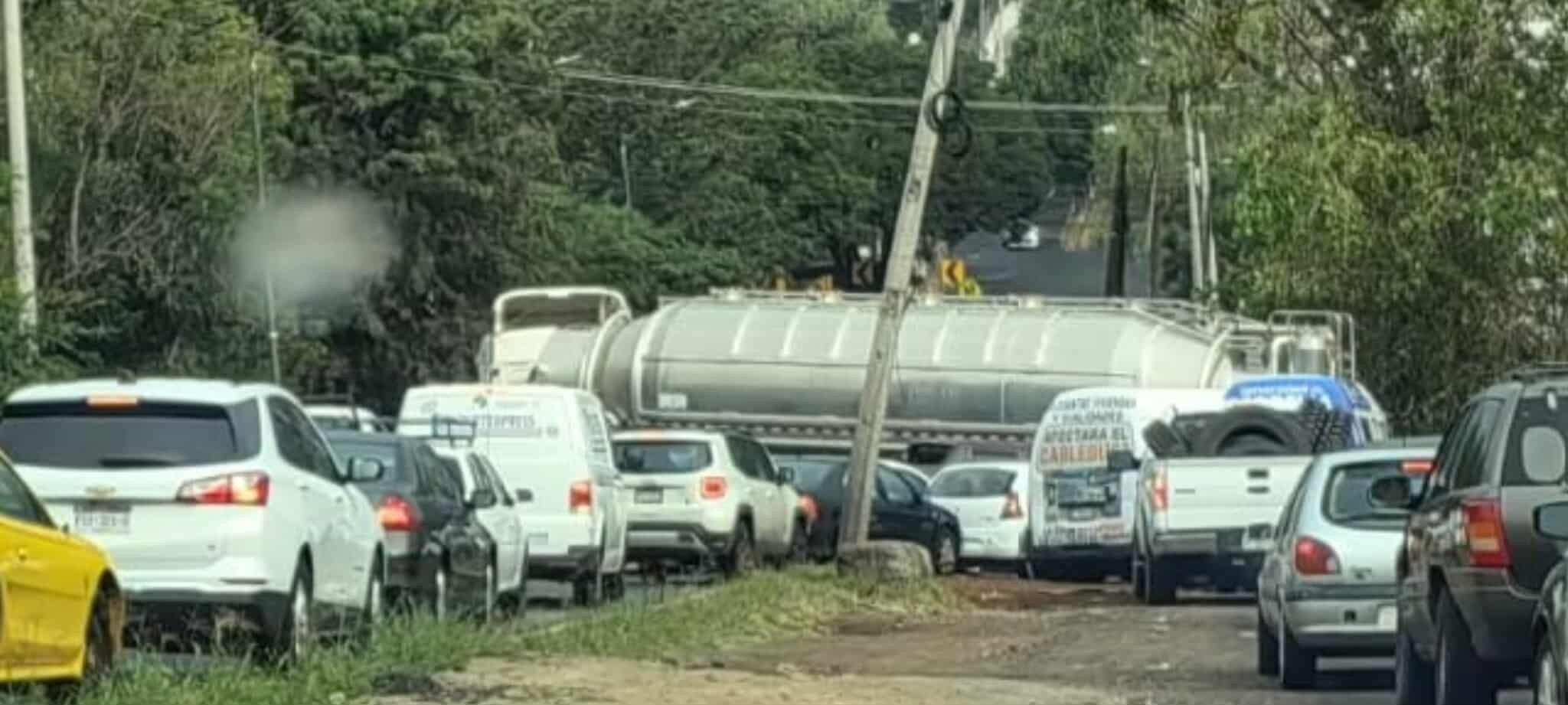 El citado tractocamión, de los que transportan polipropileno, circulaba sobre la avenida Río Grande y al llegar a al referido anillo periférico impactó levemente un coche Chevrolet Aveo, color arena.