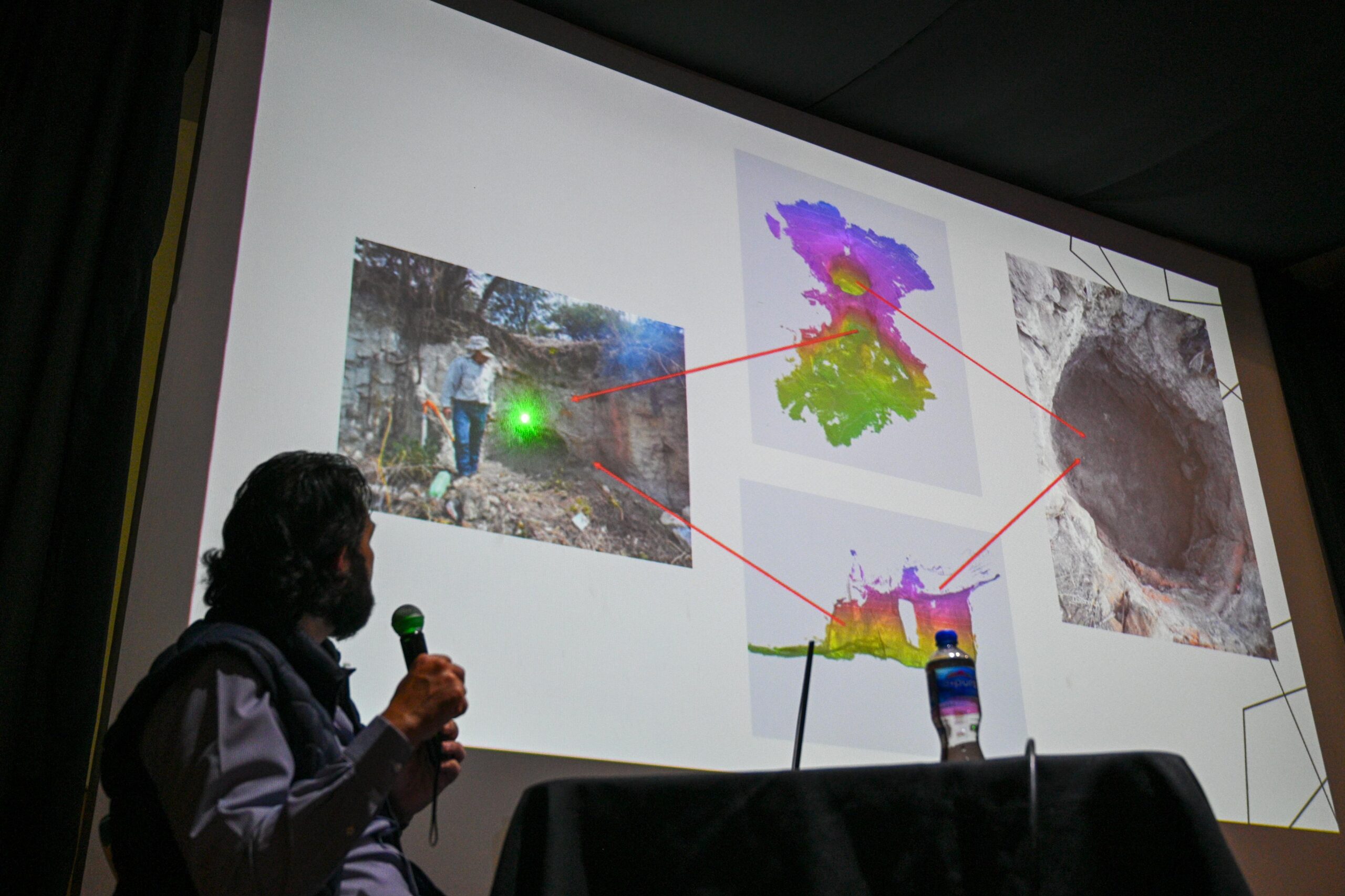 Durante la charla, el investigador presentó los hallazgos del proyecto de salvamento arqueológico realizado en el trazo del Segundo Anillo Periférico de Morelia, donde fue localizado el que hasta ahora es el único horno de cal de época colonial registrado en el estado. La estructura, explicó, resulta clave para entender cómo se edificó la ciudad, particularmente la cal usada para unir cantera y levantar templos, casas y calles del antiguo Valladolid.
