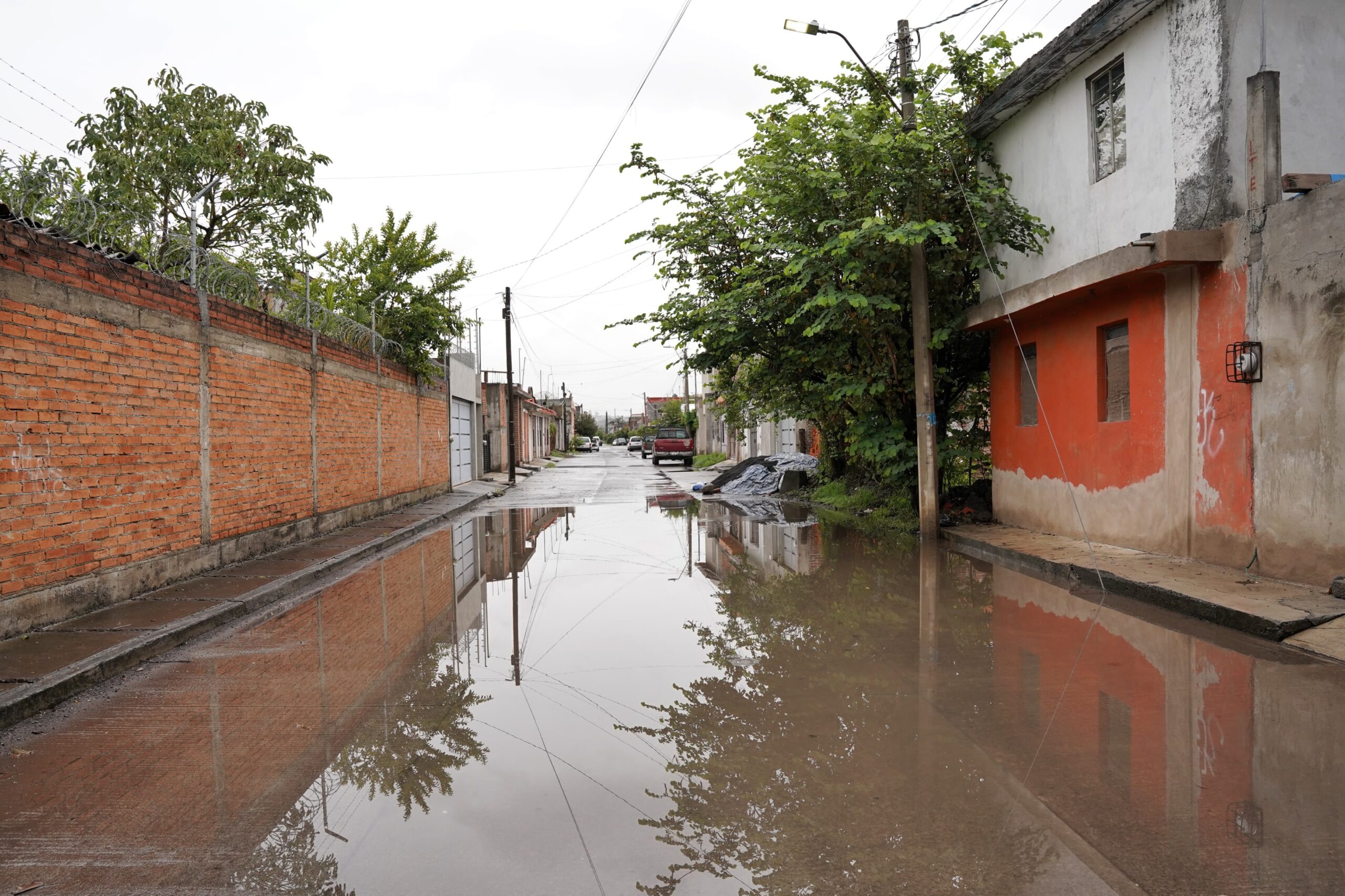 Morelia, Mich. | Asaid Castro/ACG.- La colonia Valle del Real, al norte de Morelia, amaneció entre grandes lagunas debido a las inundaciones pluviales causadas por la escasa capacidad de la zona para drenar el agua. El río que atraviesa la colonia se desbordó ayer, agravando la situación.