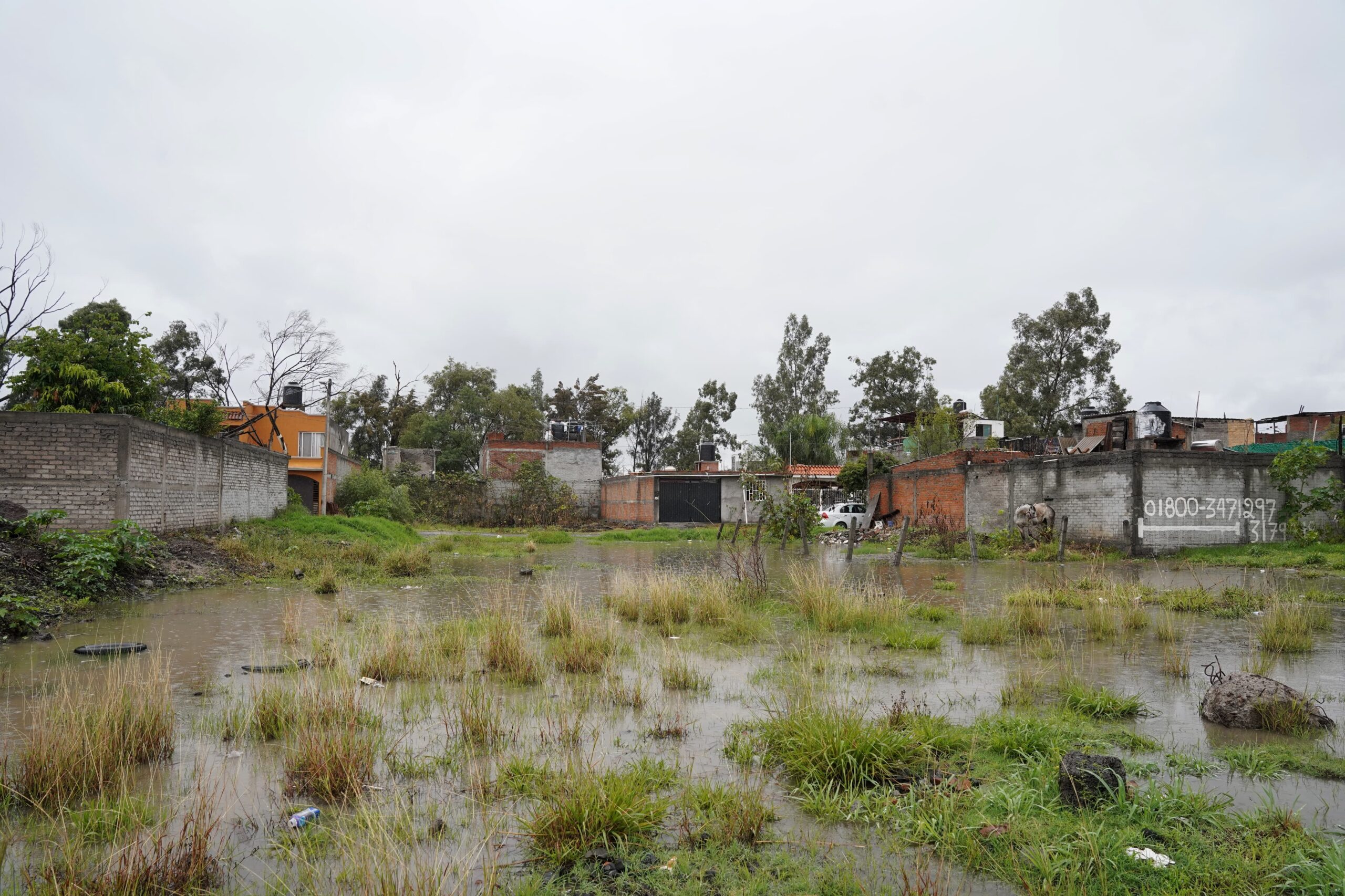 En la colonia también hay asentamientos ejidales que carecen de servicios básicos, incluyendo el drenaje. Las constantes lluvias han ido generando grandes lagunas en la zona, empeorando las condiciones de vida de los habitantes. «Baja bastante agua, ahorita está inundado. Ahorita ya bajó un poco, pero estaba todo completamente inundado», expresó María de Lourdes, vecina de los asentamientos ejidales donde de generan las lagunas.
