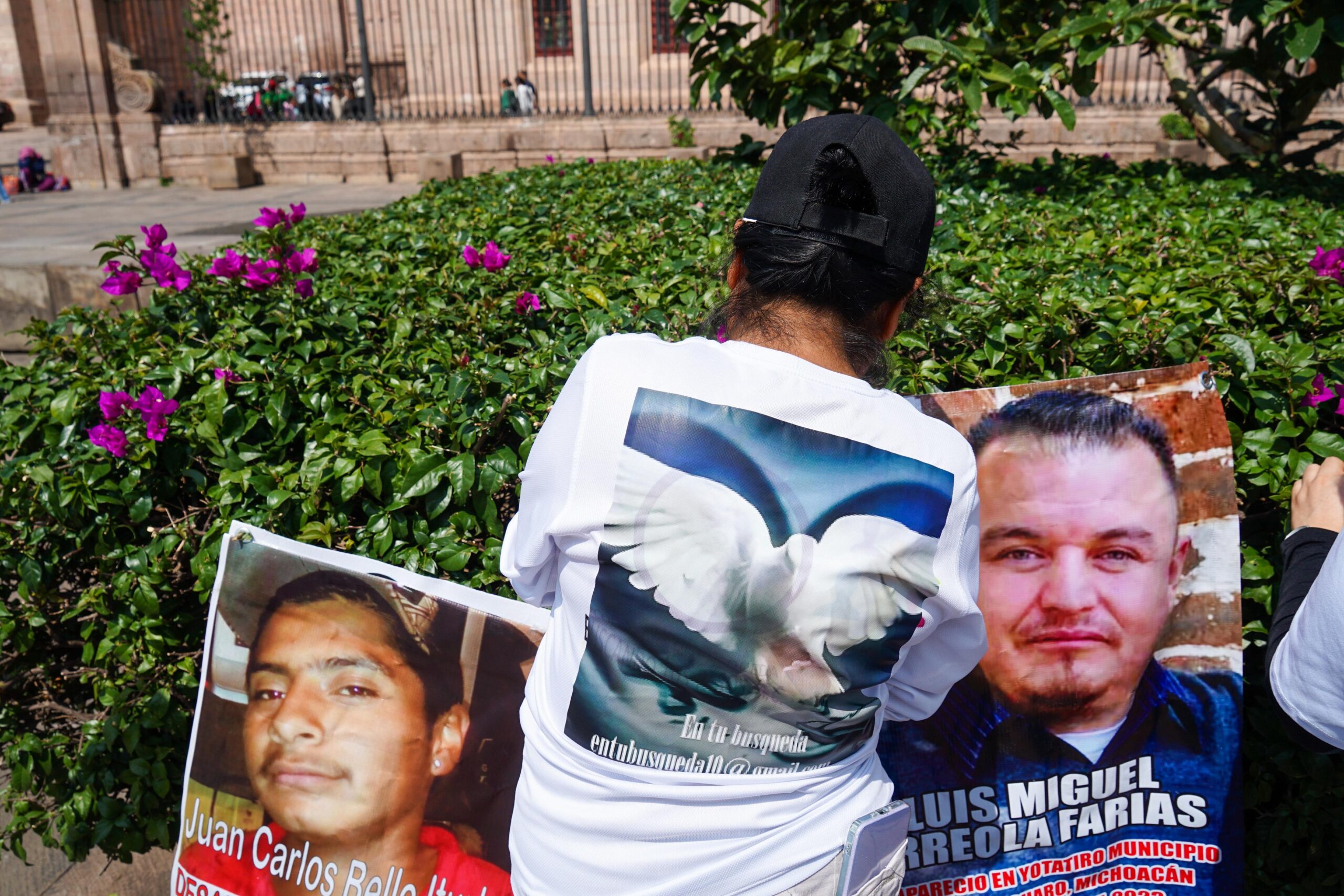 Los colectivos colocaron carteles con fotografías de personas desaparecidas en puntos como la Plaza de Armas Melchor Ocampo, el Congreso del Estado y a lo largo de la avenida Madero, para exigir atención a las autoridades, justicia para las víctimas y un alto a la violencia que persiste en Michoacán y en el país.