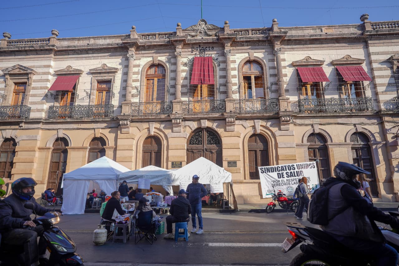 Morelia, Mich. | Agencia ACG.- A una semana de mantener bloqueos y la toma en distintos puntos del Centro Histórico y en la avenida Ventura Puente, los sindicatos unidos del sector salud reiteraron este viernes que continuarán con sus protestas hasta que el Gobierno del Estado instale una mesa de trabajo formal para atender sus demandas laborales.