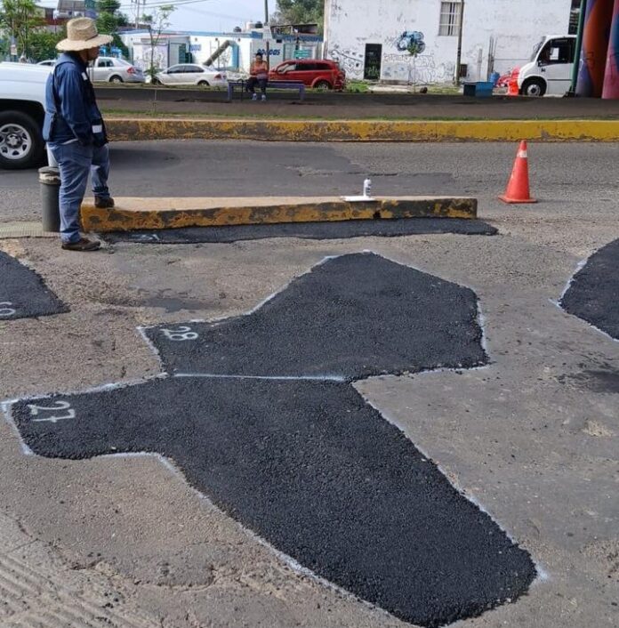 Morelia, Michoacán; 6 de junio de 2025.- Con el objetivo de garantizar vialidades seguras y en óptimas condiciones, la Secretaría de Obras Públicas, por instrucción del Presidente Municipal, Alfonso Martínez Alcázar, realiza trabajos de bacheo en la lateral de la avenida Madero Poniente, a la altura del distribuidor de salida a Quiroga, una de las zonas con mayor flujo vehicular.