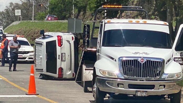 Morelia, Mich.- Jueves 03 de julio de 2025.- Una lujosa camioneta volcó sobre el Boulevard Alfredo Zalce, en la zona de Tres Marías, municipio de Morelia, incidente que únicamente dejó daños materiales, comentaron fuentes policiales y de rescate.