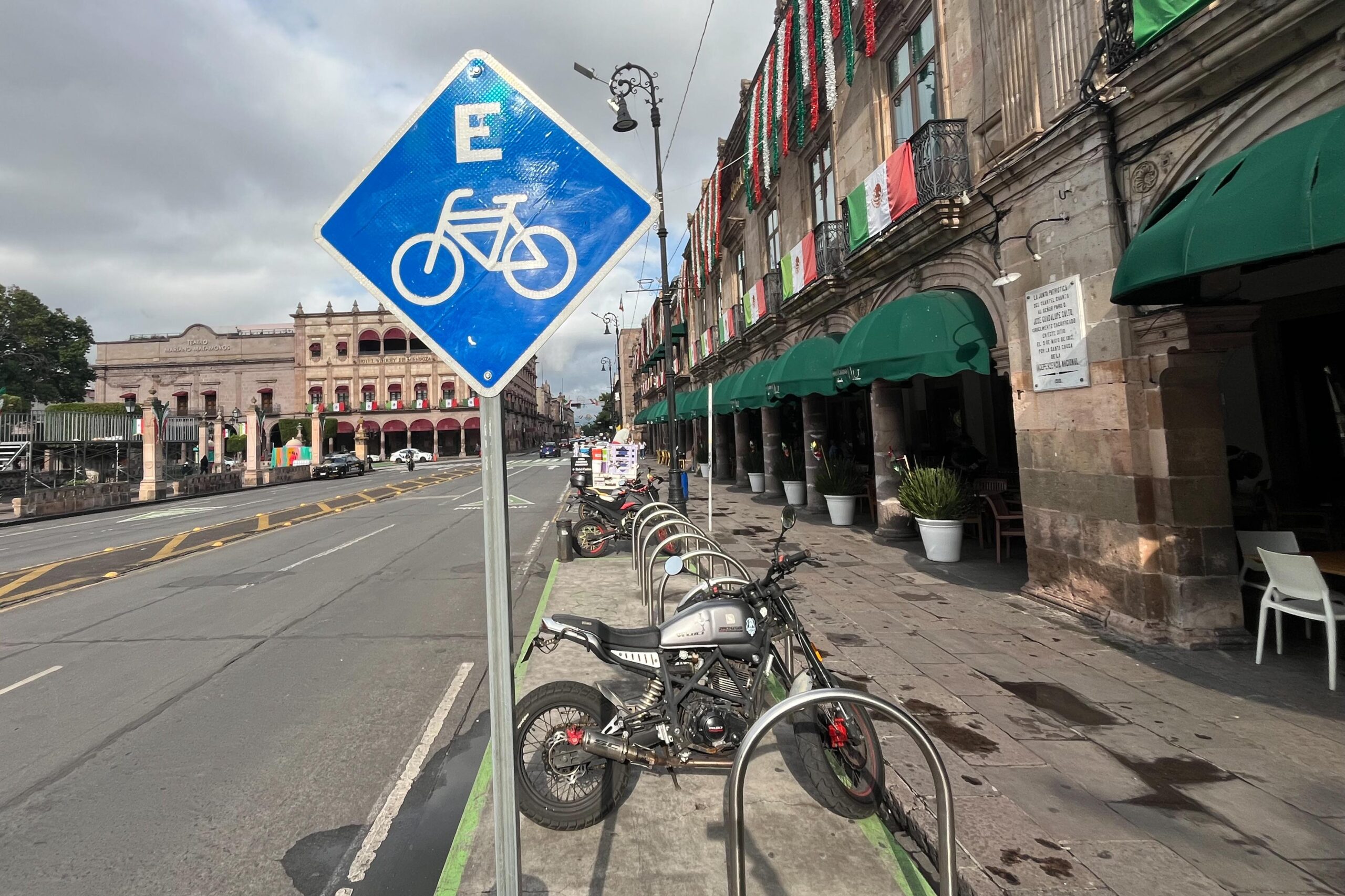 Morelia, Mich., a 17 de septiembre.- La invasión de motocicletas en espacios exclusivos para bicicletas en el Centro Histórico de Morelia se ha convertido en una práctica recurrente que afecta directamente a los ciclistas.