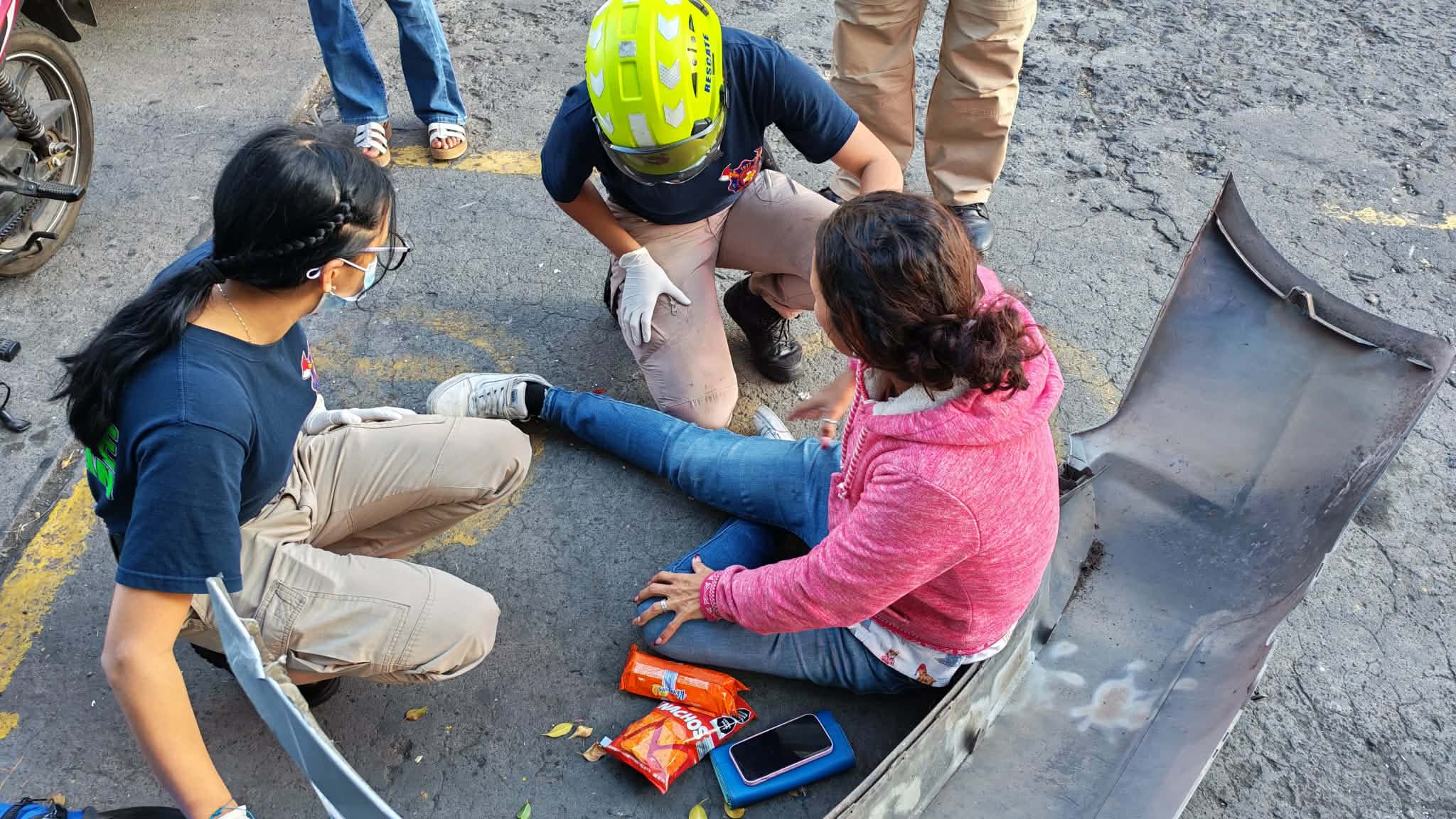 Zamora, Mich.- 12 de diciembre de 2025.- Una mujer peatona resultó lesionada al ser arrollada por un vehículo que fue chocado por un camión pasajero, incidente en el que otro auto y una moto que estaban estacionados también resultaron afectados.