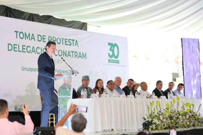 Uruapan, Michoacán; 12 de febrero de 2026.- Garantizar el Estado de Derecho no requiere nuevas leyes, sino que se cumplan las existentes, destacó el presidente municipal de Morelia, Alfonso Martínez Alcázar, durante su participación en la toma de protesta de la Mesa Directiva de la Confederación Nacional de Transportistas Mexicanos (Conatram) – Región Michoacán.