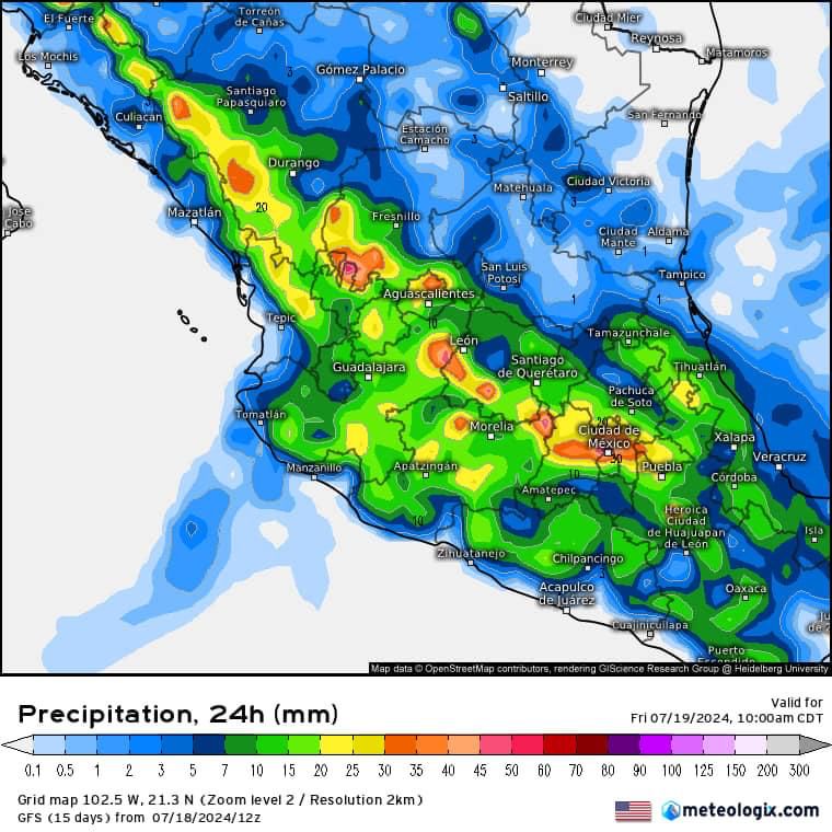 Se espera que las lluvias más fuertes se registren esta tarde noche debido a la interacción de la onda tropical no. 11 y una posible variabilidad en la distribución de la presión atmosférica en una zona determinada, la cual podría afectar al municipio y el estado por lo que se recomienda a la población extremar precauciones debido a que zonas de tormenta se puede presentar actividad eléctrica, rachas de viento y posibles inundaciones.