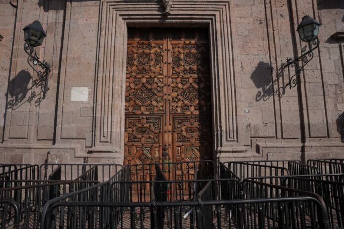 Morelia, Michoacán | Redacción Agencia ACG.- El Palacio de Gobierno de Michoacán amanece resguardado, con vallas metálicas y elementos de seguridad, ante la Marcha del Silencio a nivel nacional, convocada por el llamado colectivo Generación Z este 14 de diciembre.