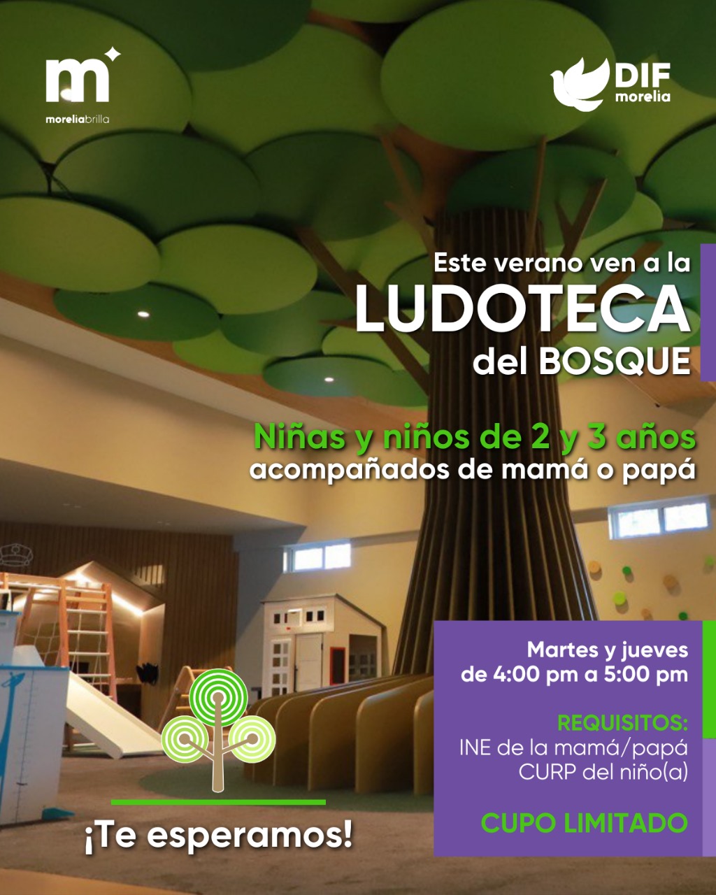 Morelia, Mich. | Acueducto Online.- El DIF Morelia, que dirige la Presidenta Honoraria, Paola Delgadillo Hernández, anuncia la apertura de un espacio especial en la Ludoteca del Bosque Cuauhtémoc durante este verano, destinado a niñas y niños de 2 y 3 años, el cual permitirá que los pequeños disfruten de las instalaciones acompañados por sus padres, promoviendo un entorno seguro y estimulante para su desarrollo integral.